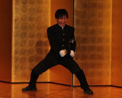 その後、体育会応援団の西本徹氏(応援団リーダー部第41代団長、理学部4年)による“巻頭言”と“五高寮歌”が披露されました。 |