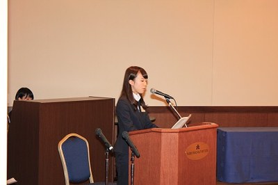 当日は、放送部の高瀬晴菜氏(放送部、文学部2年)と原口佳歩氏(放送部、法学部2年)の司会進行の下、総会が行われ、安田宏正会長(武夫原会理事、昭和42年法文学部卒)、二塚信熊本大学同窓会連合会会長(熊杏会会長、昭和39年医学部卒)からの挨拶のほか、平成27年度の熊本大学卒業生表彰受賞者の紹介、役員等紹介が行われました。