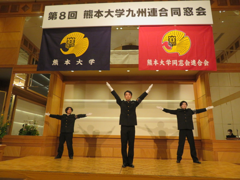 会の終盤では、恒例となっている応援団による「マーチングメドレー」、「巻頭言、五高寮歌」が披露されました。今回は、応援団OBの方も加わり、華やかな演舞となりました。